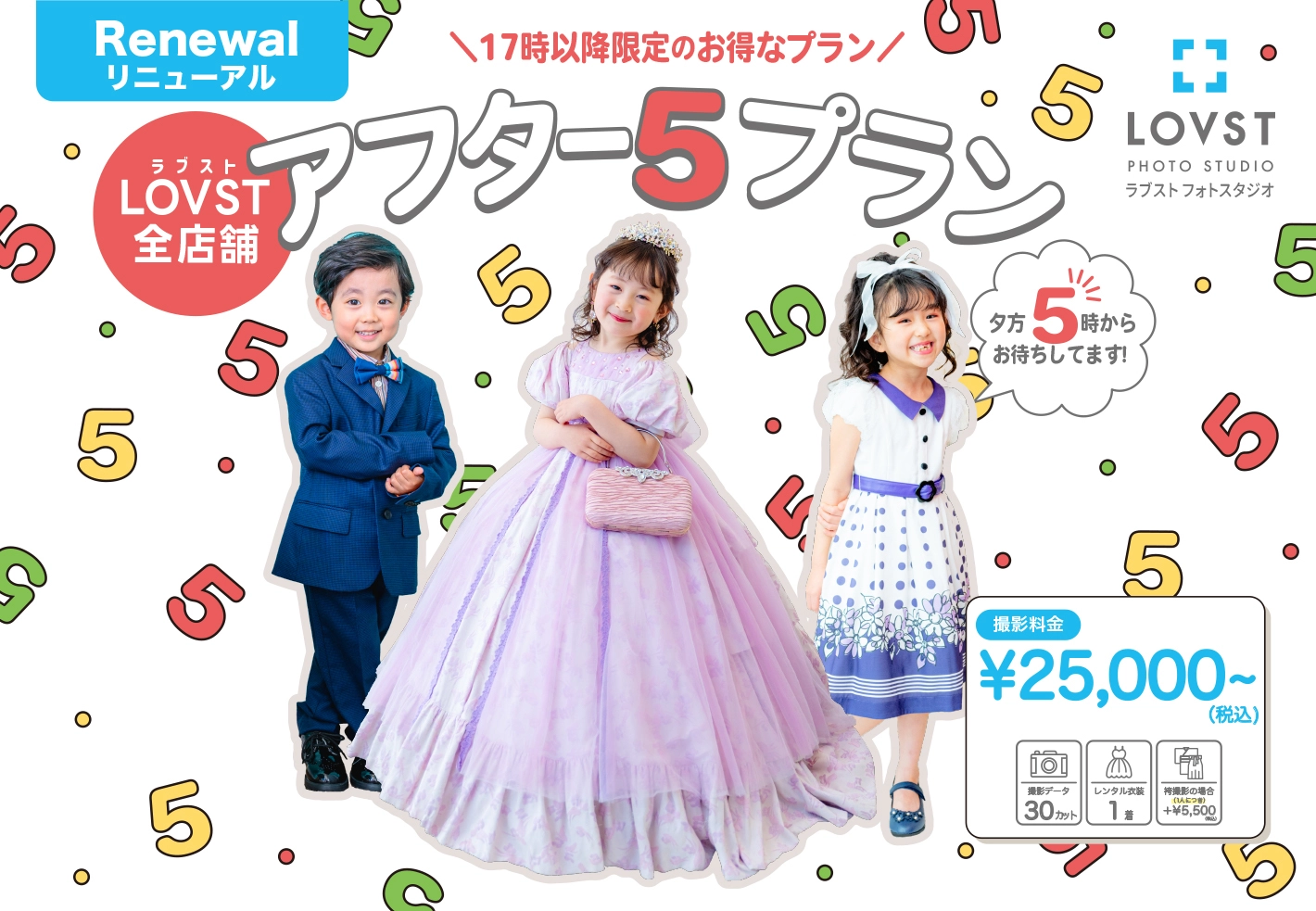 アフター5プランは、主役のお子様は最大1着までレンタル可能です。ご兄弟は、1名まで最大1着レンタル可能です。