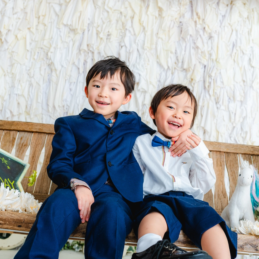 ご兄弟のソロ撮影は、75カット以上のプランに限り、ご案内可能です。ご希望の場合、税込3,300円頂戴いたします。プラン内の25カットを、ご兄弟のソロ撮影としてご案内いたします。