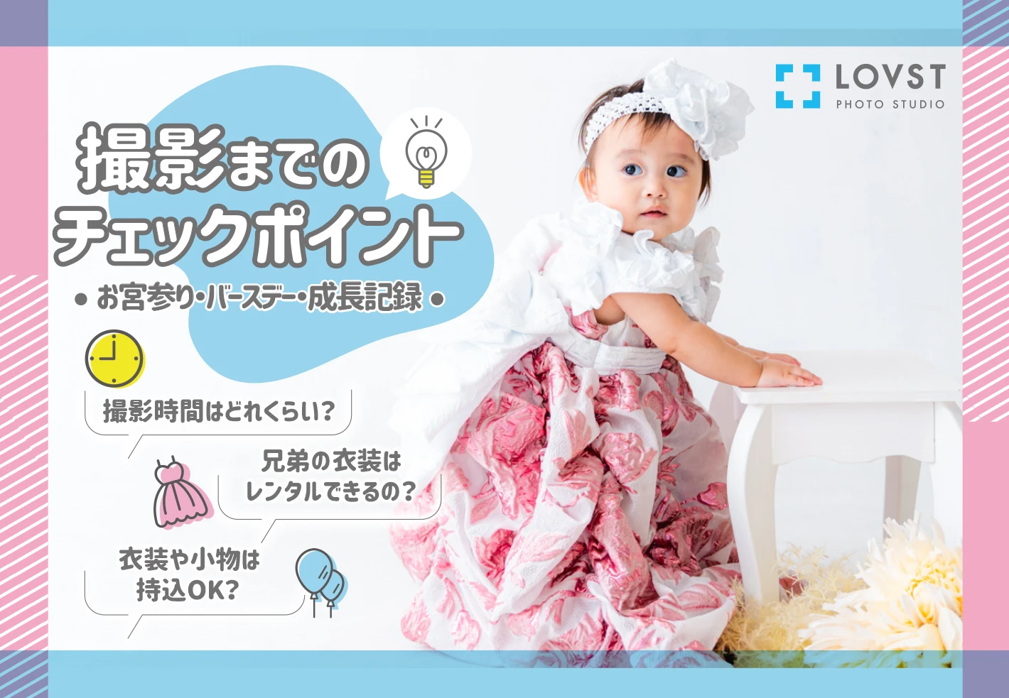 バースデープランでは、レンタル・お持ち込み衣装ともに和装撮影不可となります。