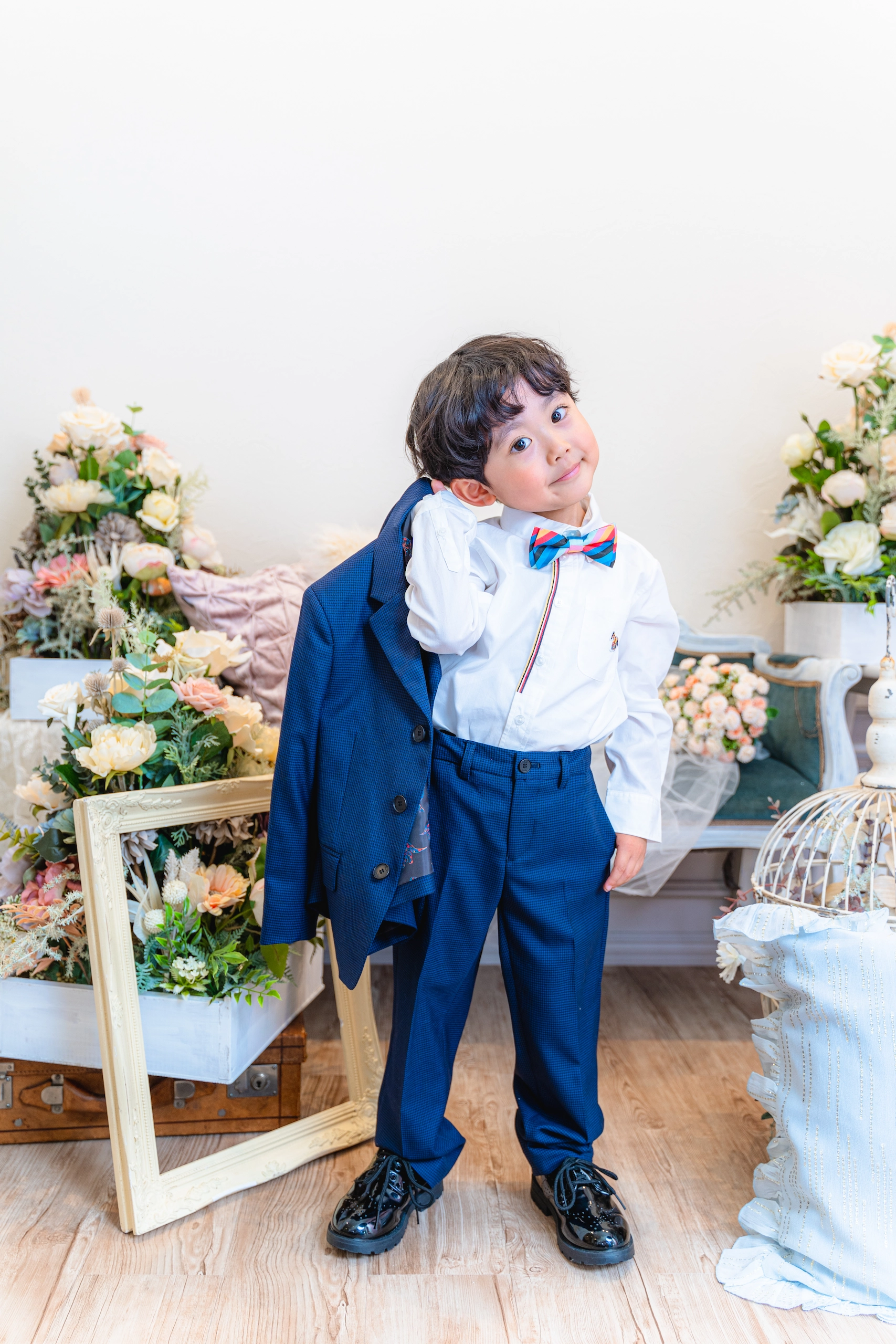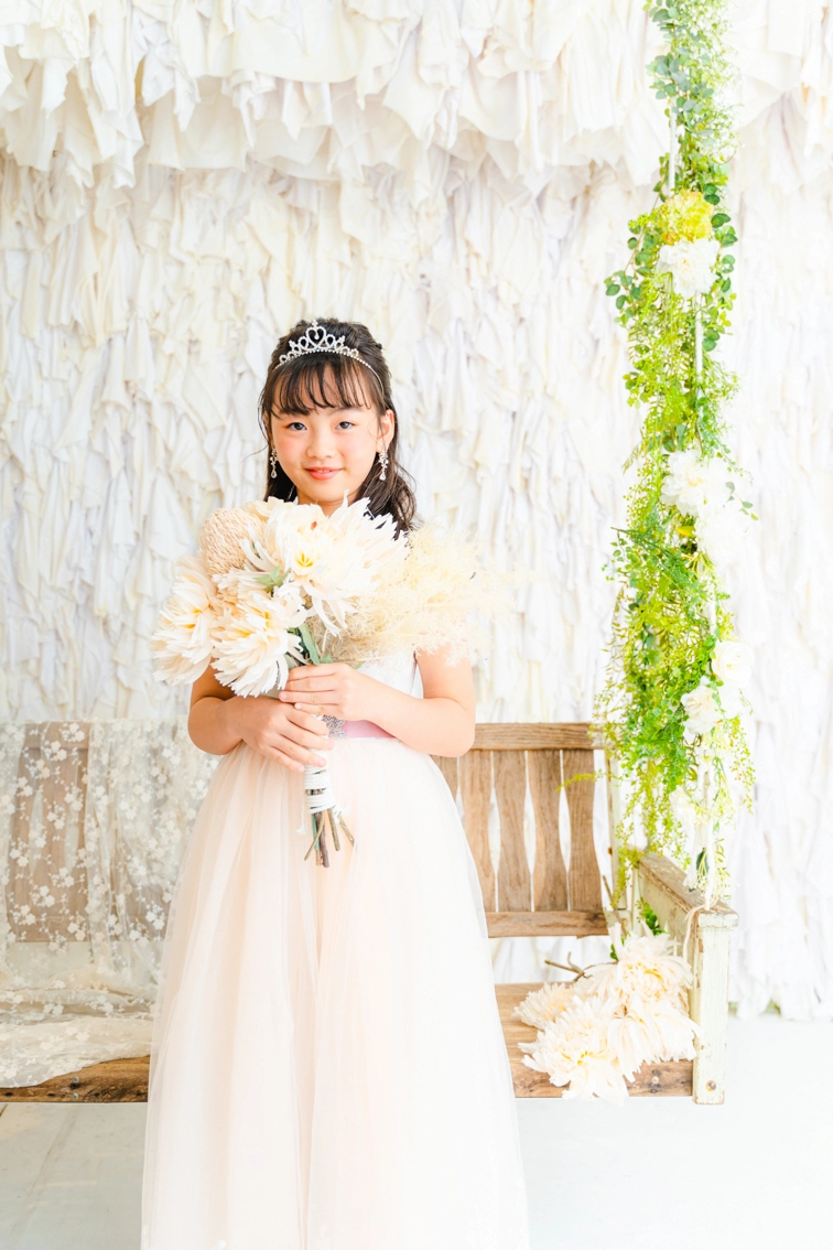撮影プランの所要時間・カット数・シーン数の中で、洋装追加が可能です。オプション料金として1名様1着につき税込3,300円頂戴いたします。