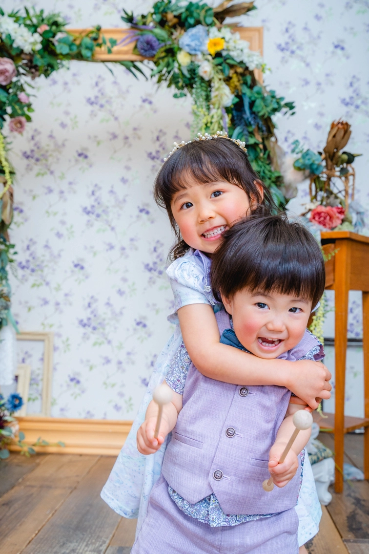 もちろん撮影可能です。参加人数により撮影の内容(シーン数・カット数)を調整させていただきます。お子様3名様以上ご参加の場合、3名様以降、1名様につき税込3,300円を頂戴いたします。参加されるご兄弟が、お宮参り/百日祝いにて和装をご希望の場合は、税込3,300円を頂戴いたします。