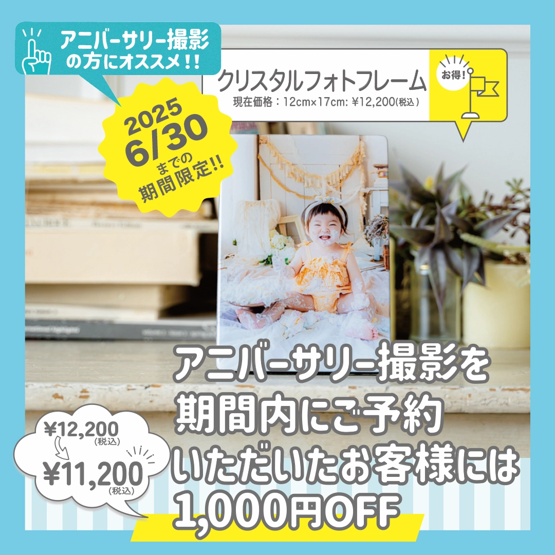 見学会特典(割引き、フォトアクリルSサイズのプレゼント)は対象外です。