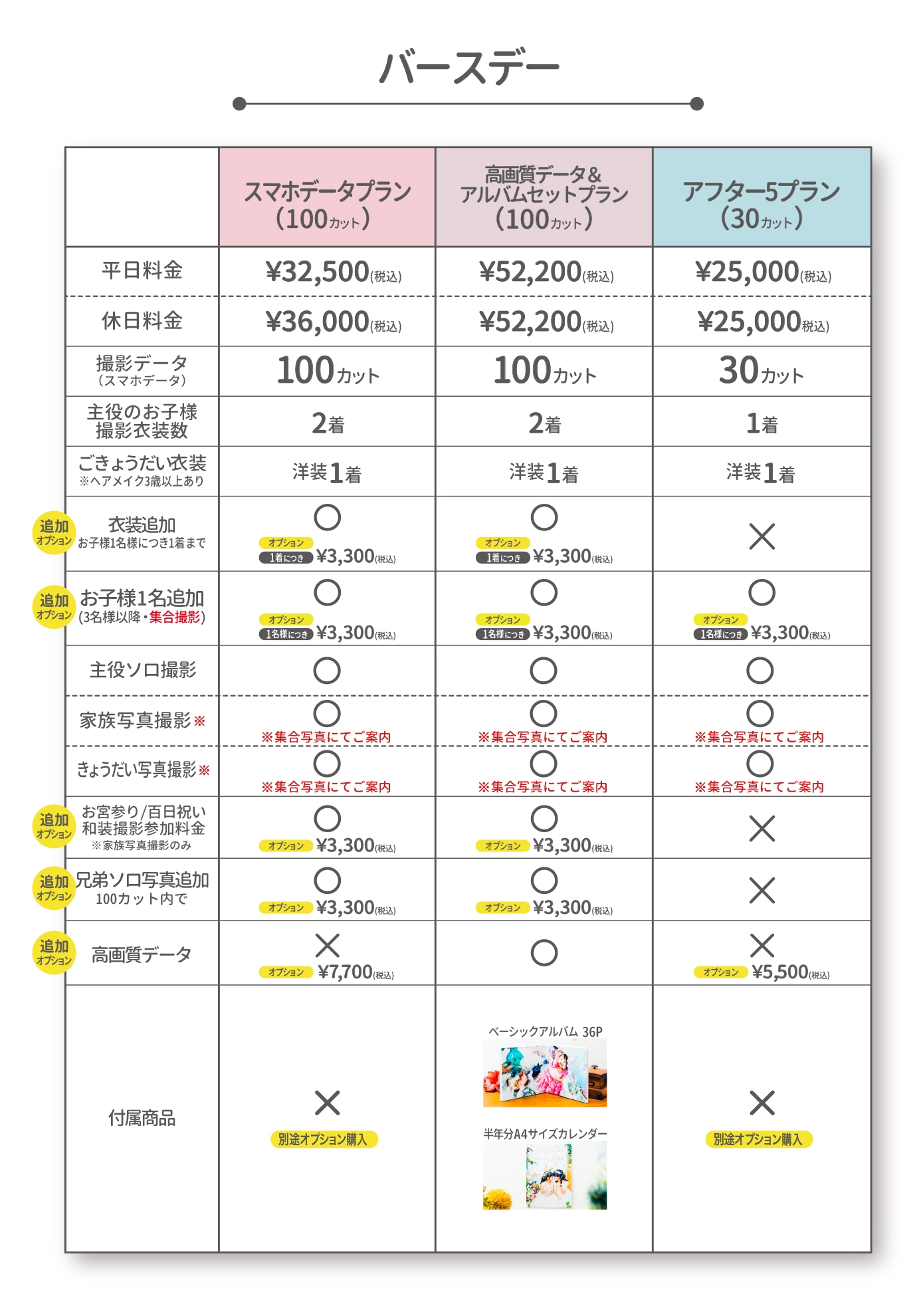 • 撮影料金平日料金 ¥32,500(税込)
