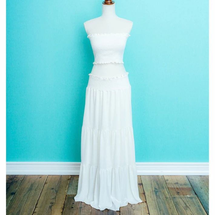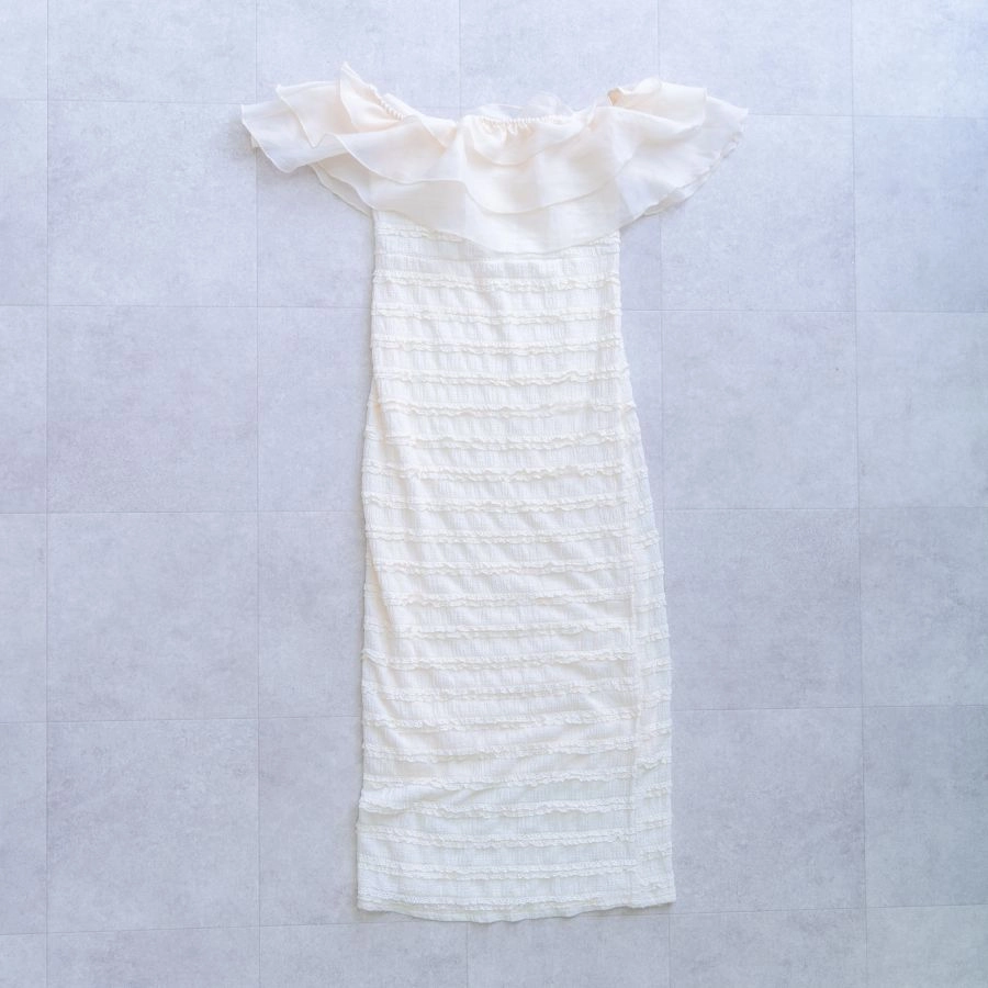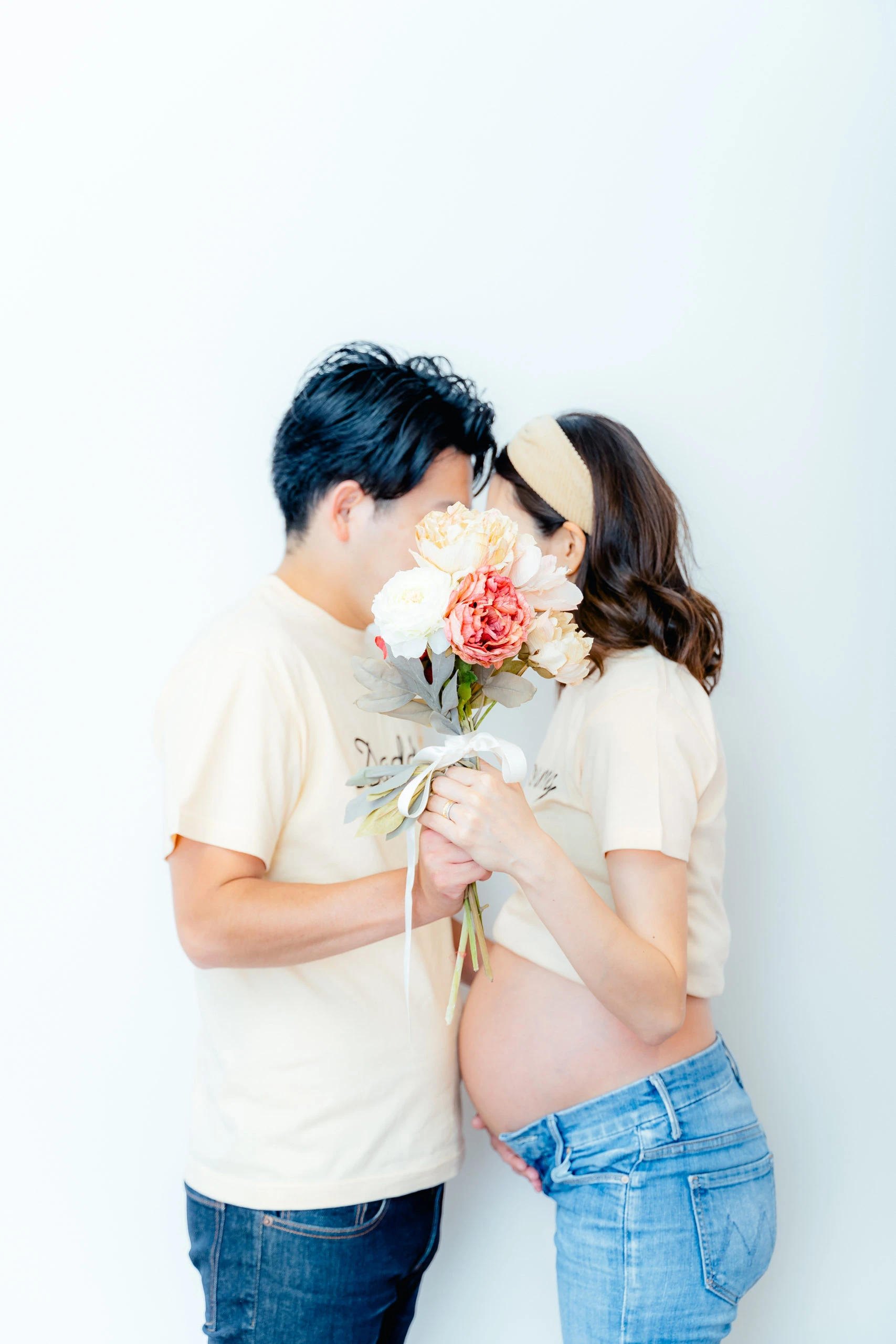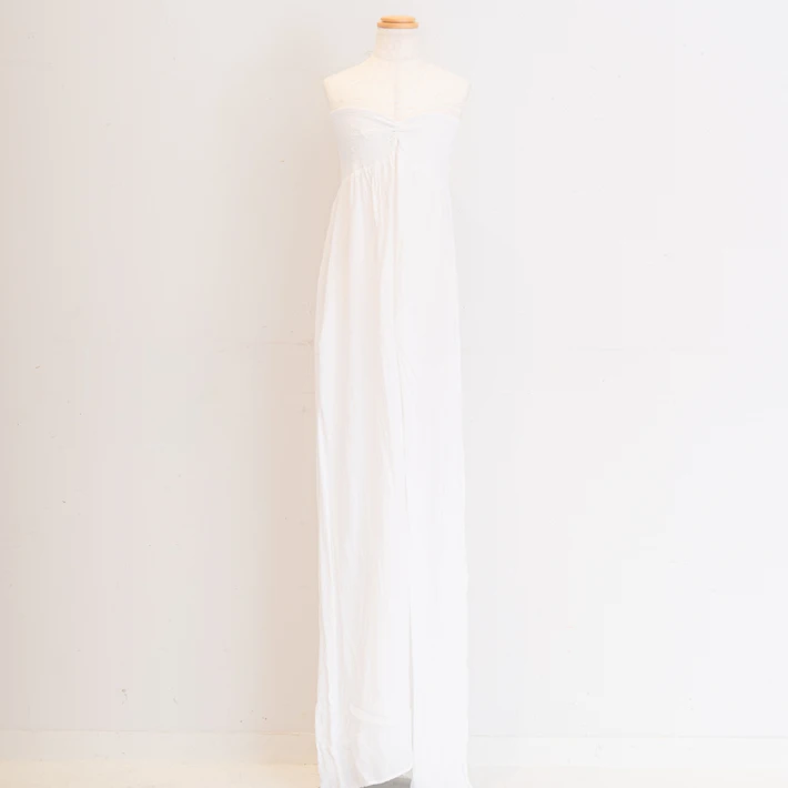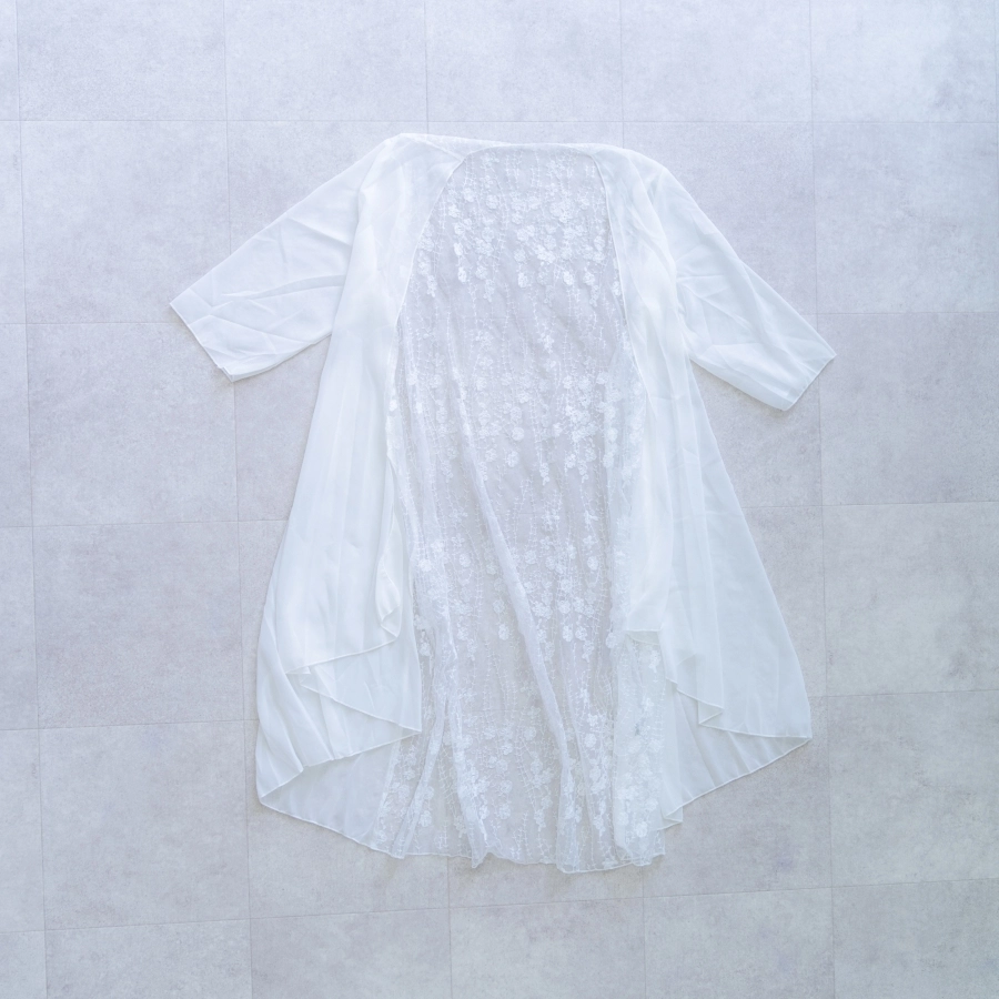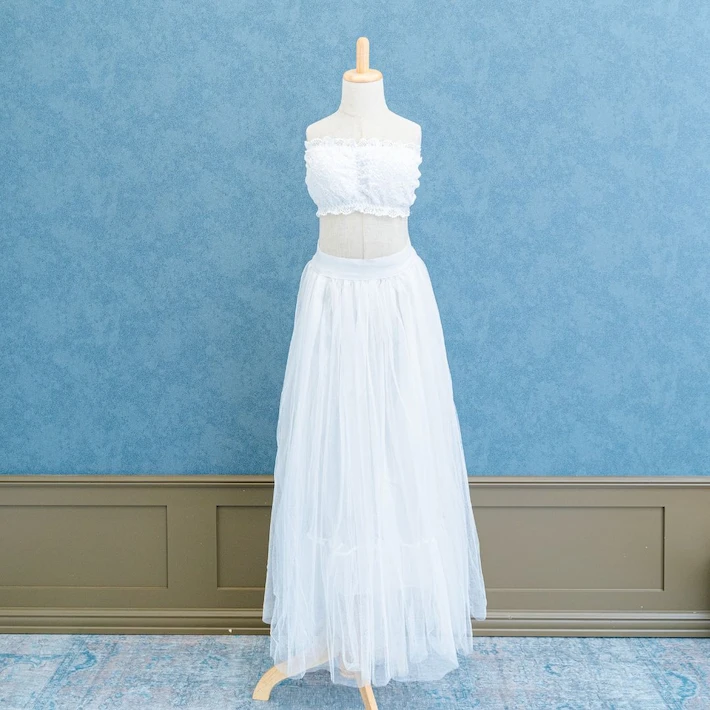 肩の出たデザインのマタニティドレスを着用される場合、ブラトップやヌーブラ、下着が透けないインナーなどをお持ちください。またお腹を出しての撮影をご希望の場合は、撮影時にお洋服の跡が残らないように、ワンピースなどのお洋服でのご来店をいただきますと綺麗に撮影することができます。デニムなどズボンのチャックをおろしての撮影の場合、下着が見える可能性がございますので、下着とは別にインナーをご持参ください。