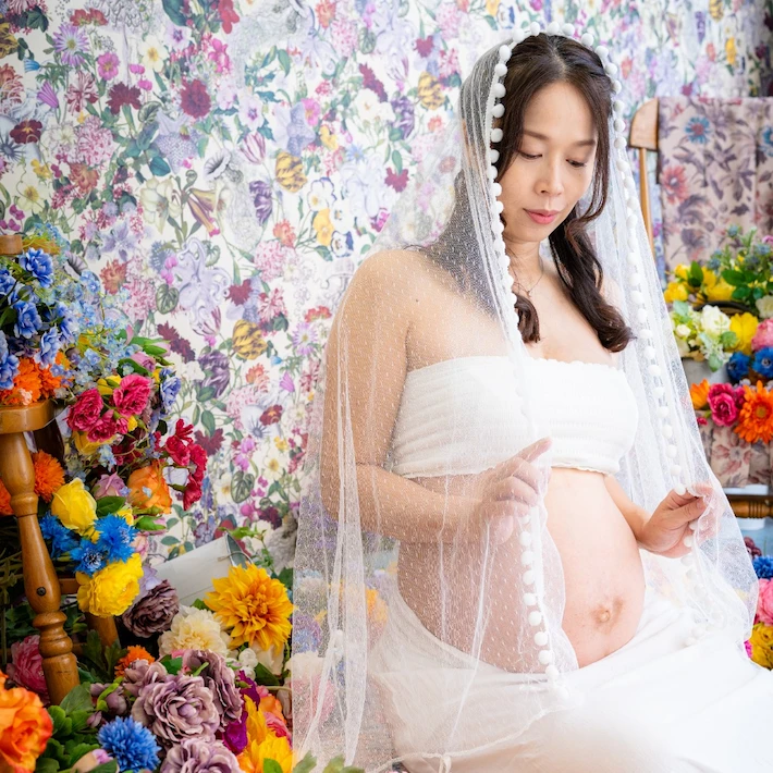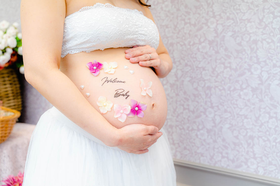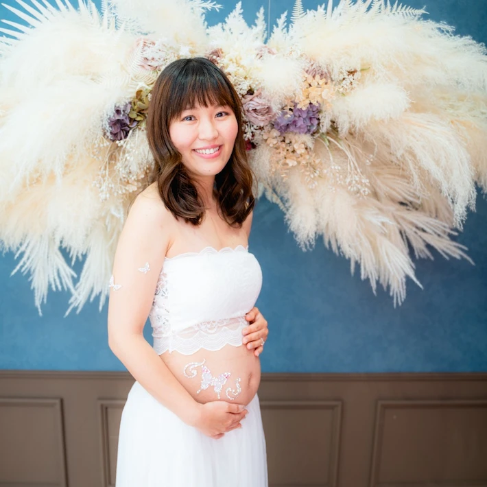 ⑤マタニティペイントシールを用いた撮影