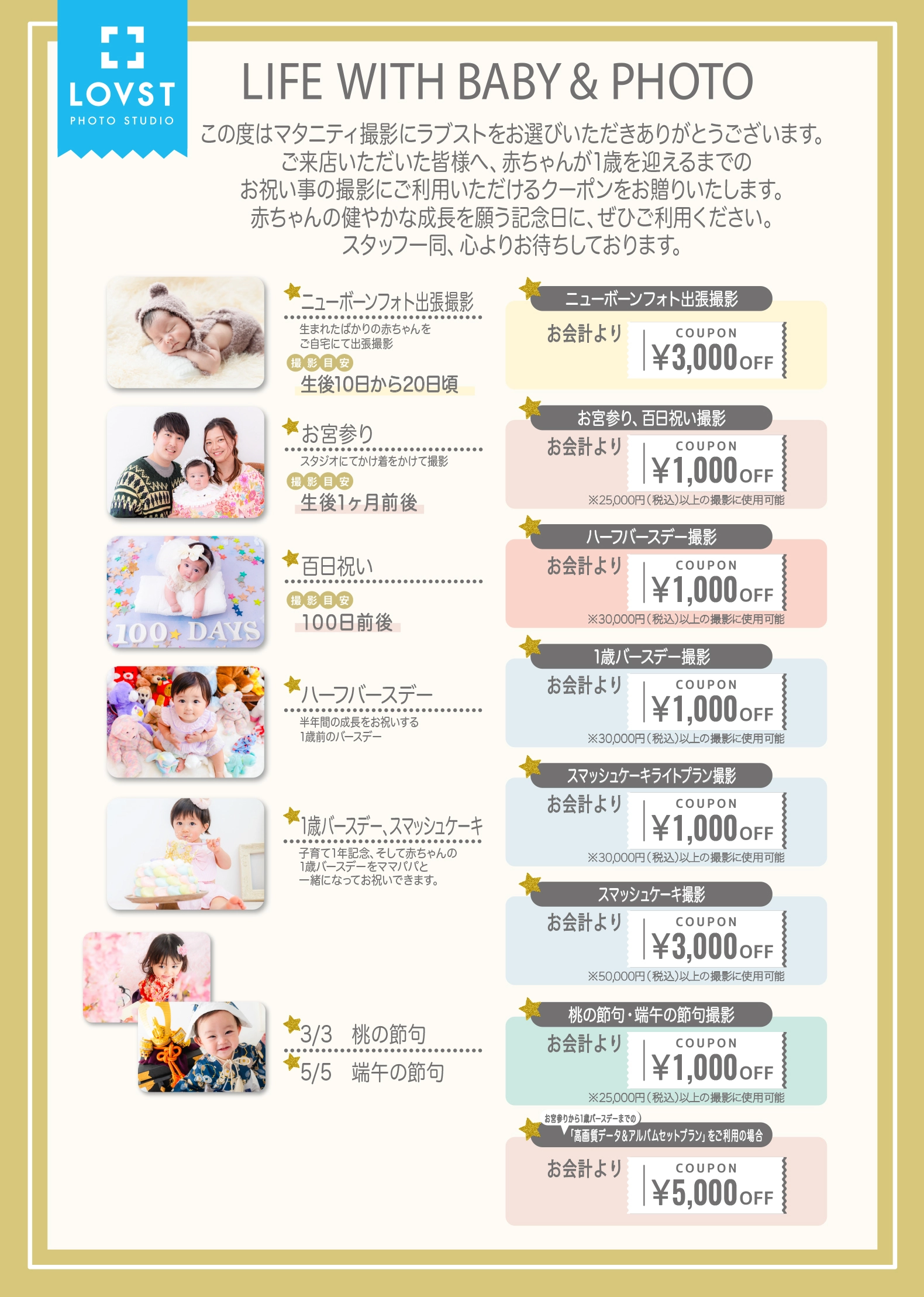 ※マタニティペイントシールのご用意はございません。ご希望の方はお持ち込みください。シーン数