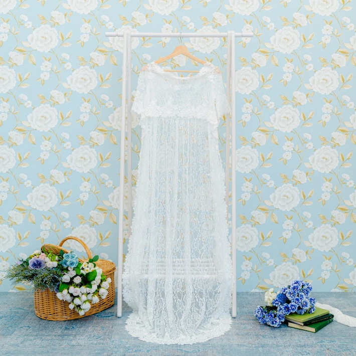 店舗衣装・お持込み衣装合わせて、マタニティフォトライトプラン (10カット)は1着、マタニティフォトライトプラン (20カット)・マタニティフォトスマホデータプラン (100カット)は2着まで着られます。