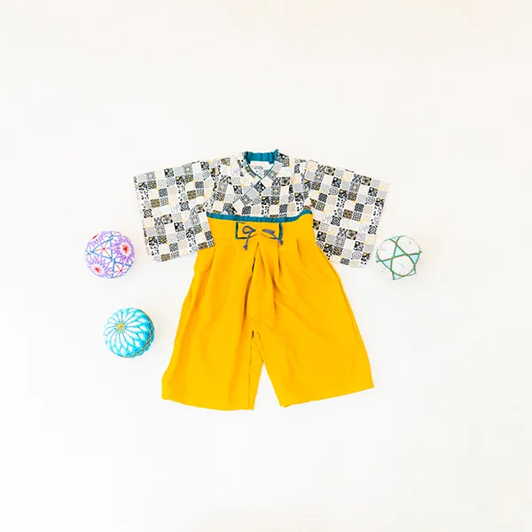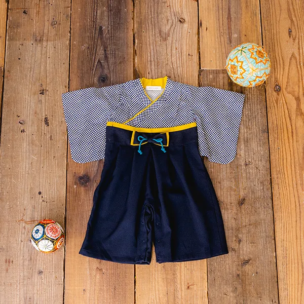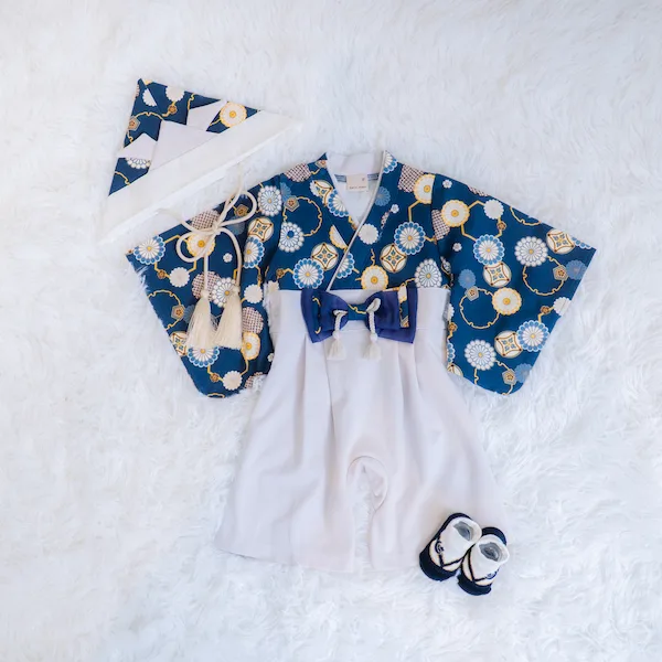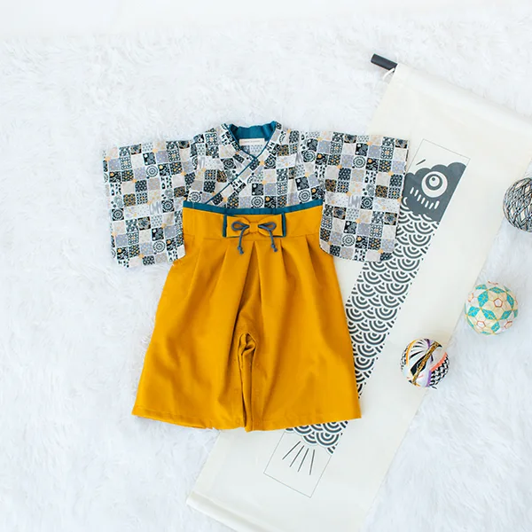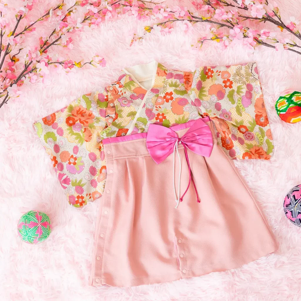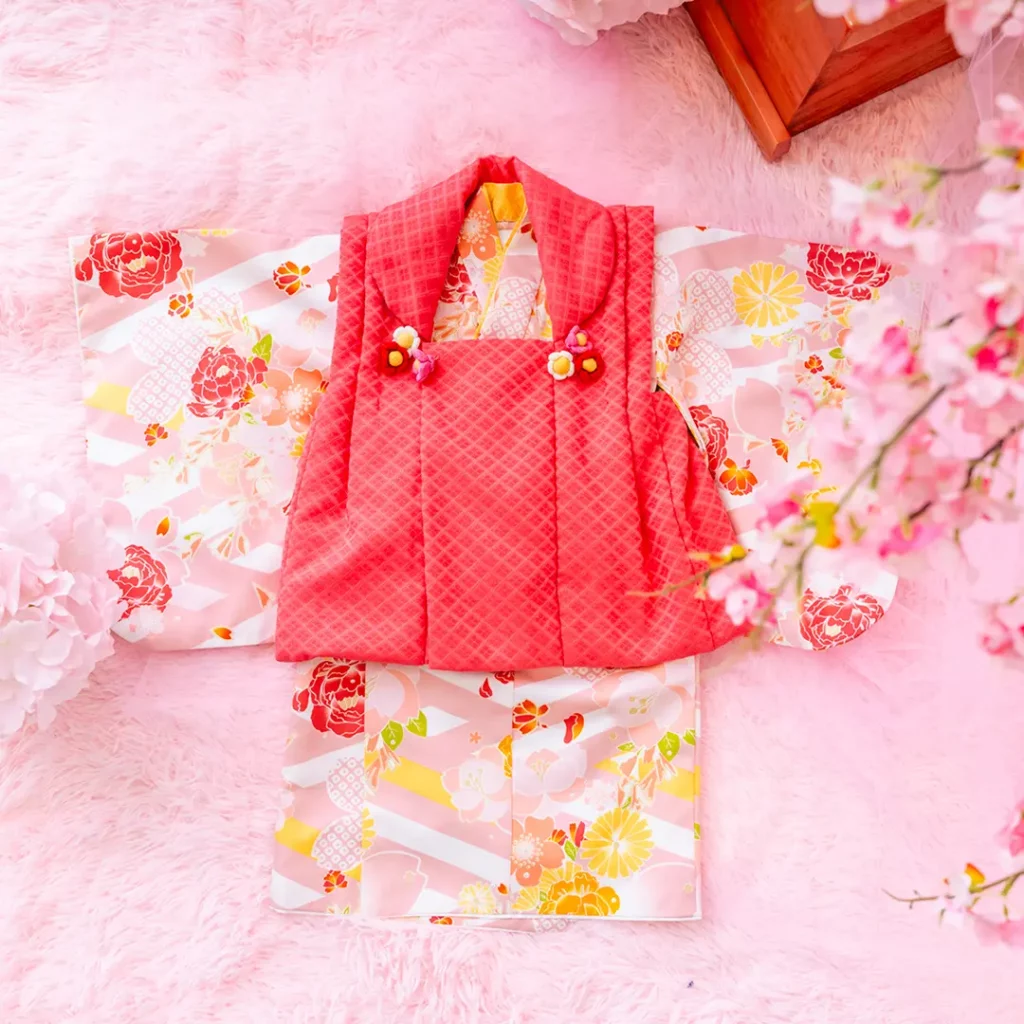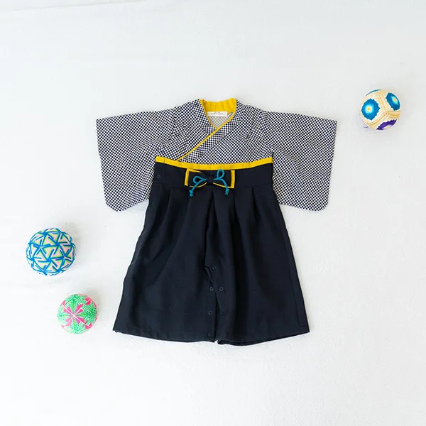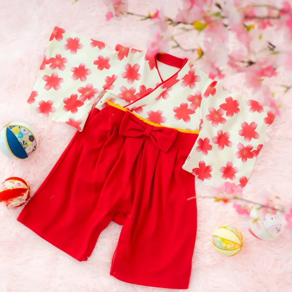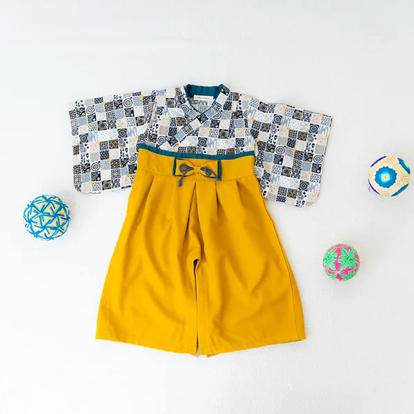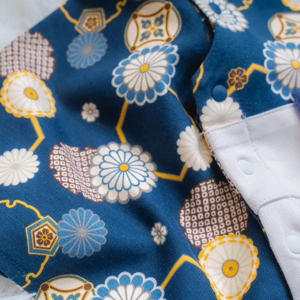 日本の伝統的なお花をあしらった袴カバーオールは