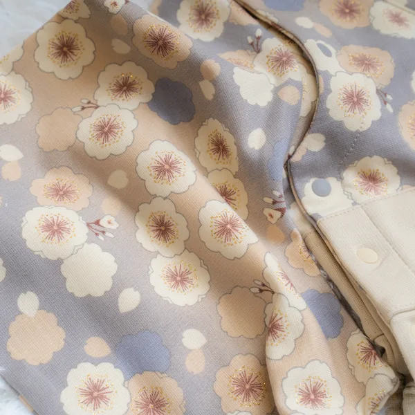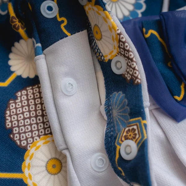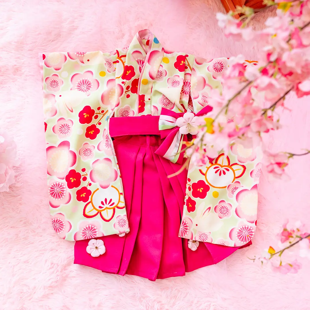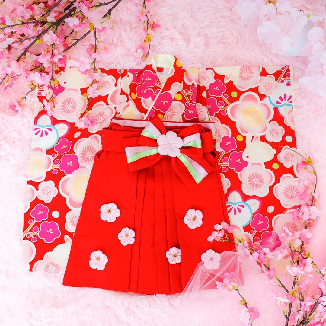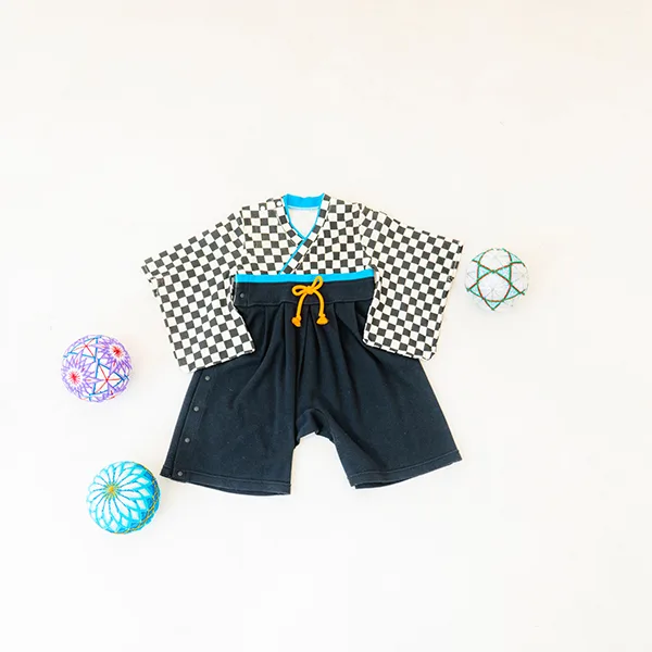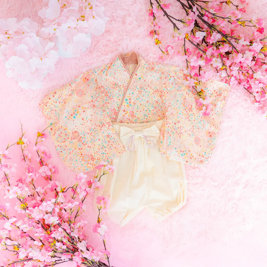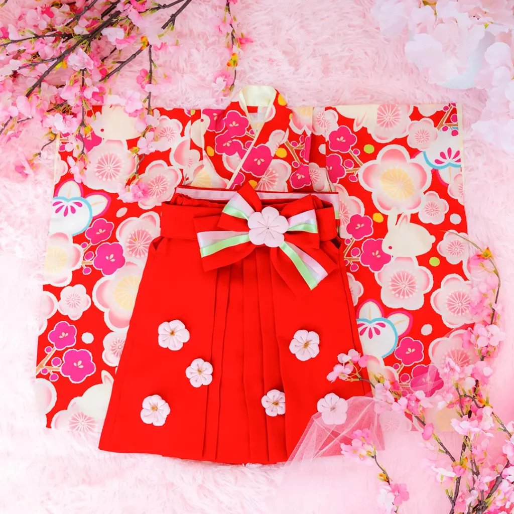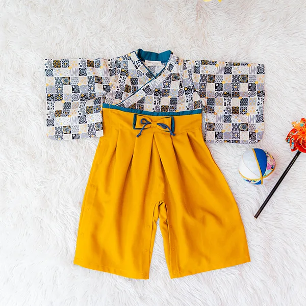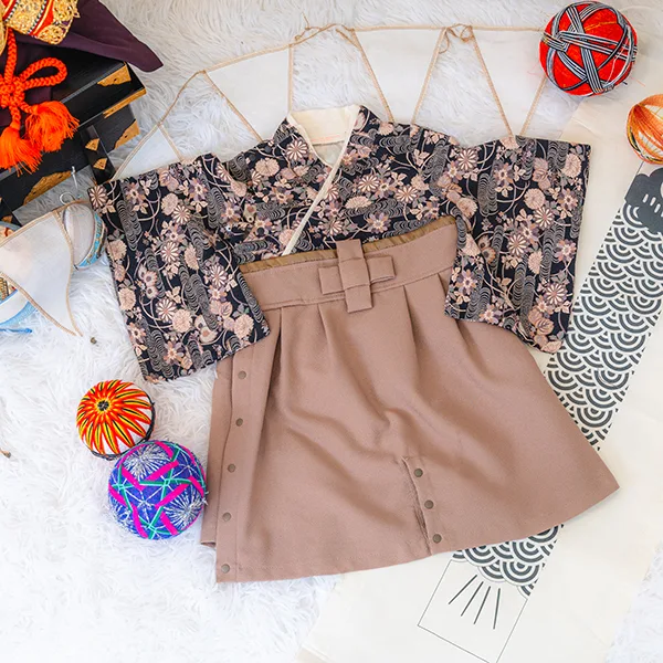 日本の伝統的なお花をあしらった袴カバーオールは