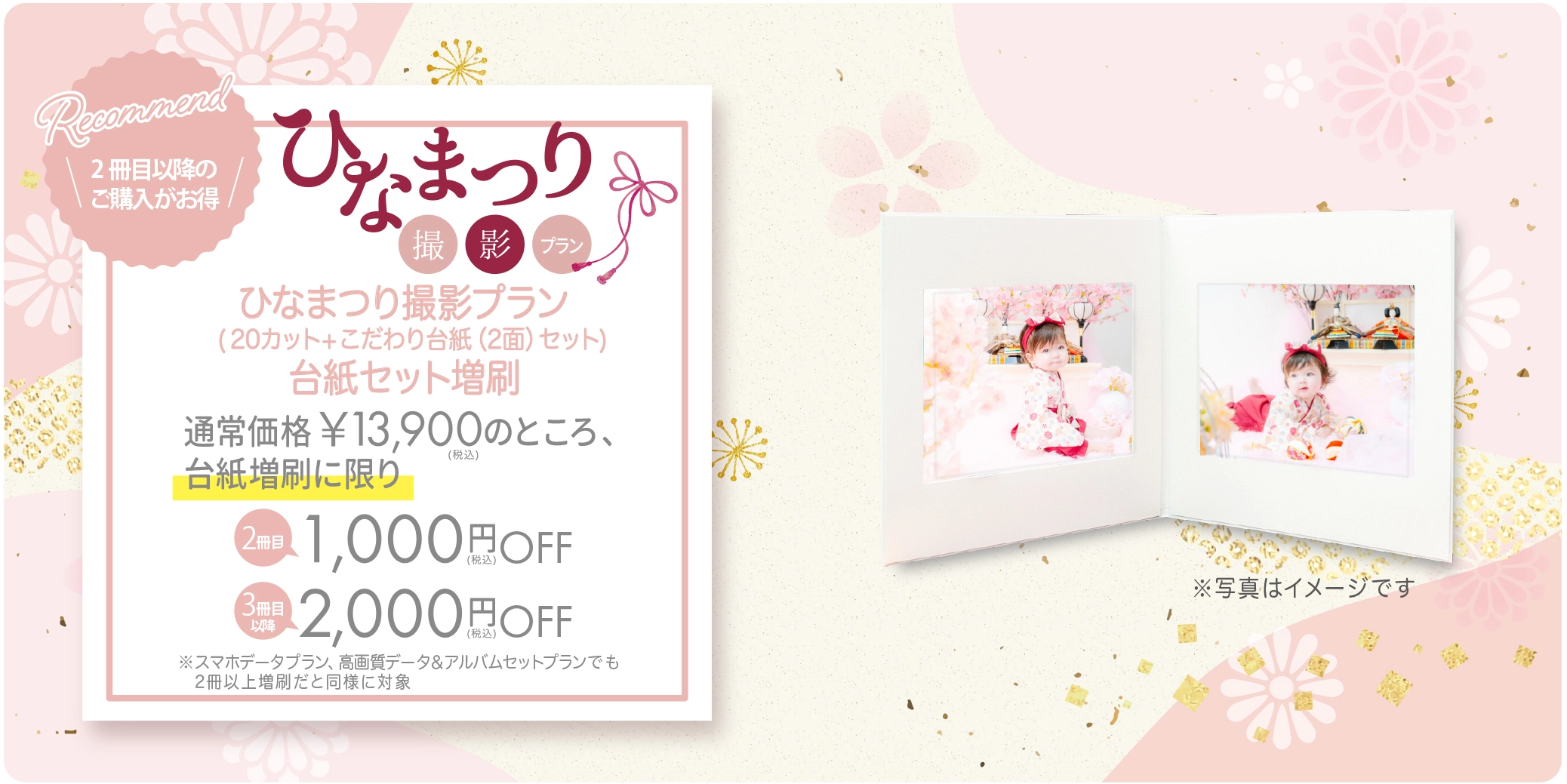キャンペーン期間中の撮影で、ひなまつり限定デザイン半年分A4サイズカレンダーをプレゼント!