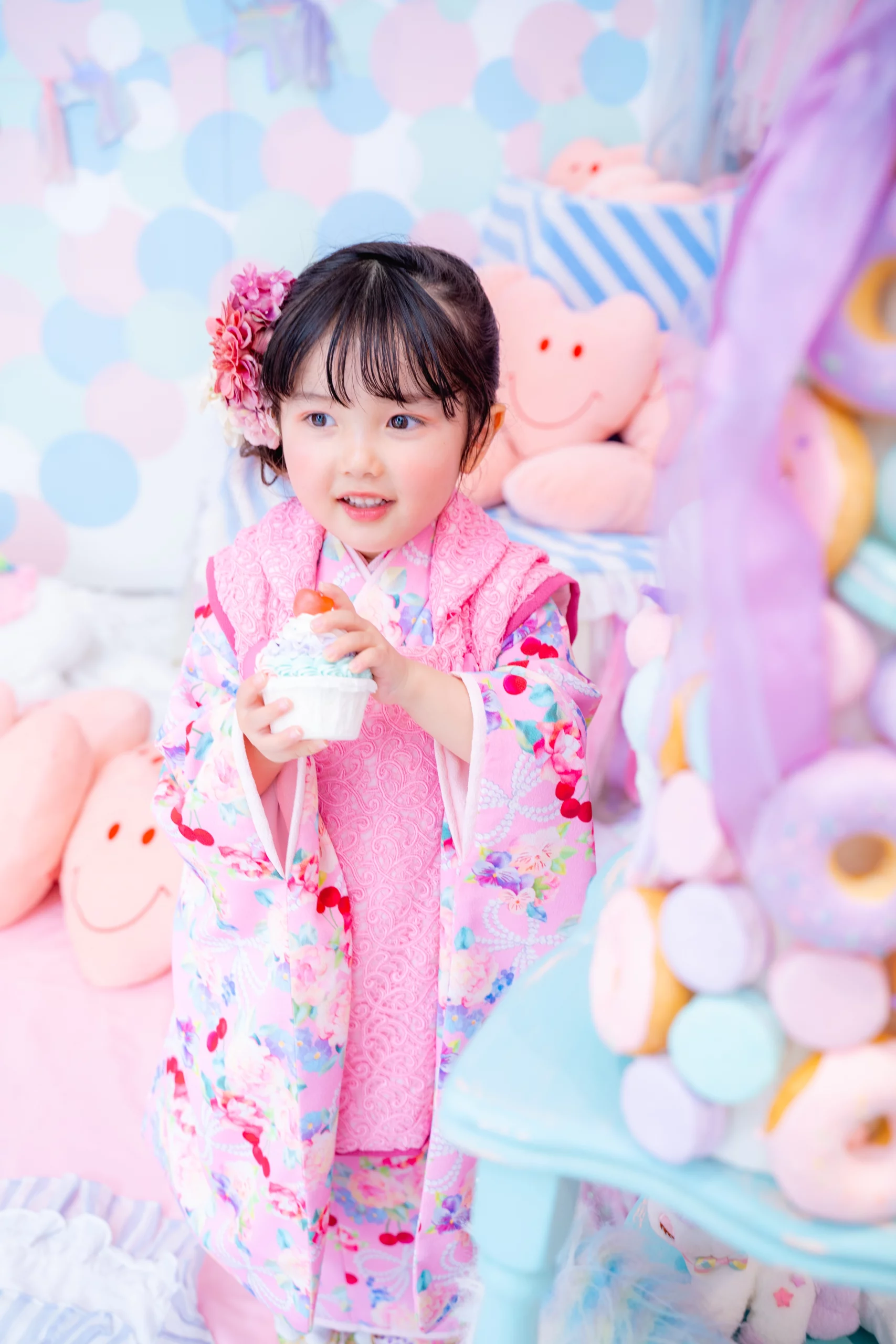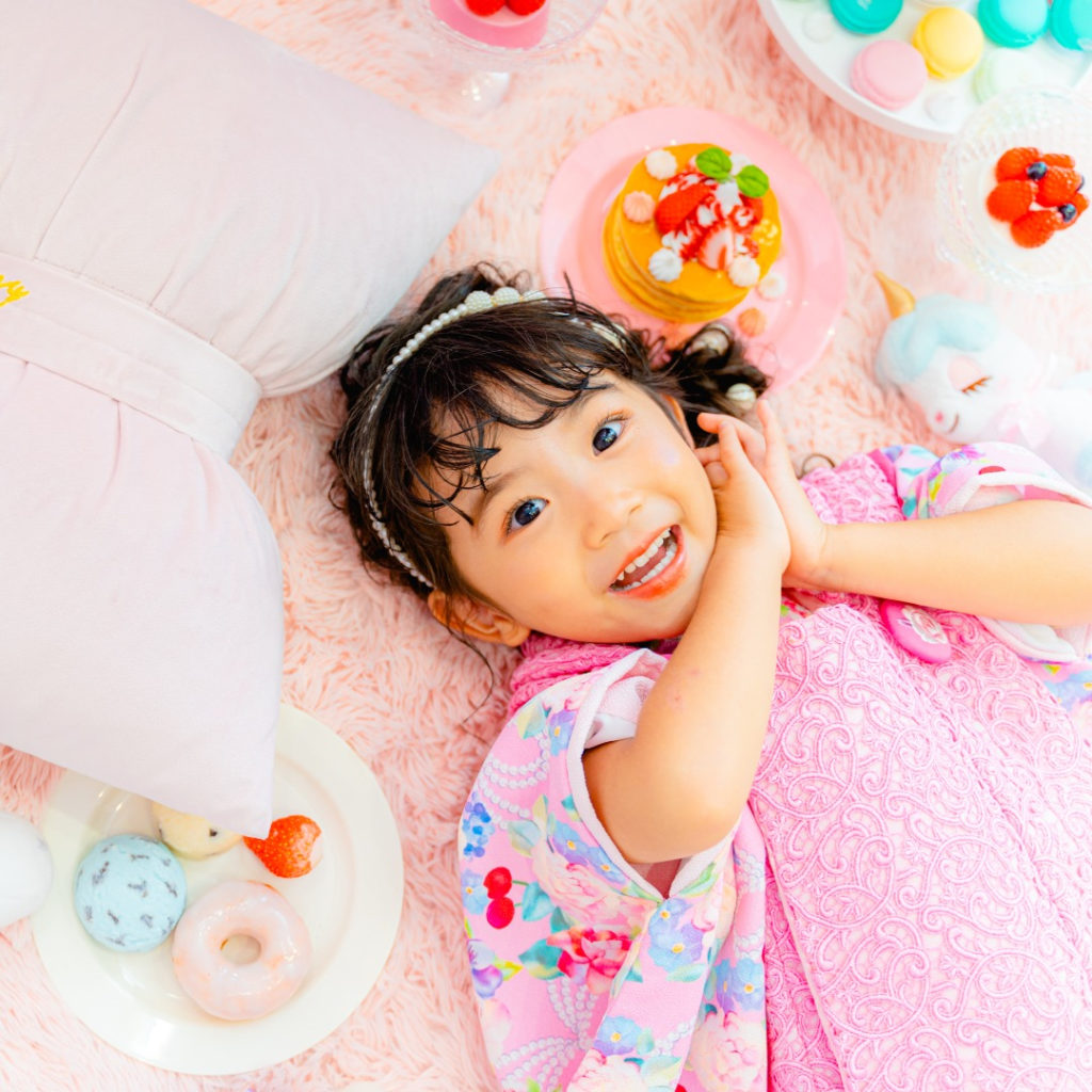 七五三のお子様は、年齢的にも全撮影時間対応が可能ですが、お腹が空いたり、眠くなってしまったり等は起こり得るので、お子様に合わせて予約時間をお選びください。スタジオで軽食やオヤツを食べる事もできますので、是非ご相談ください。