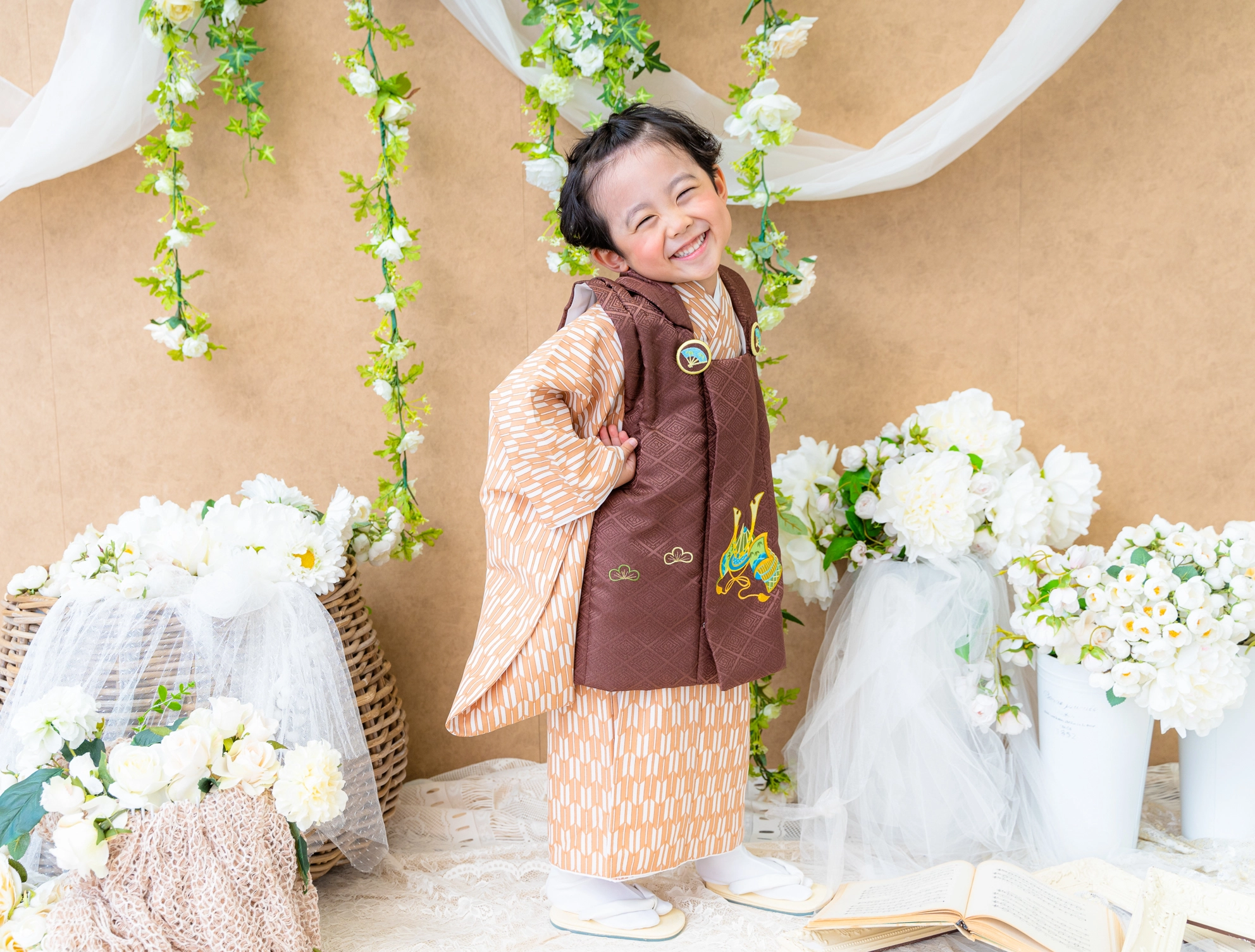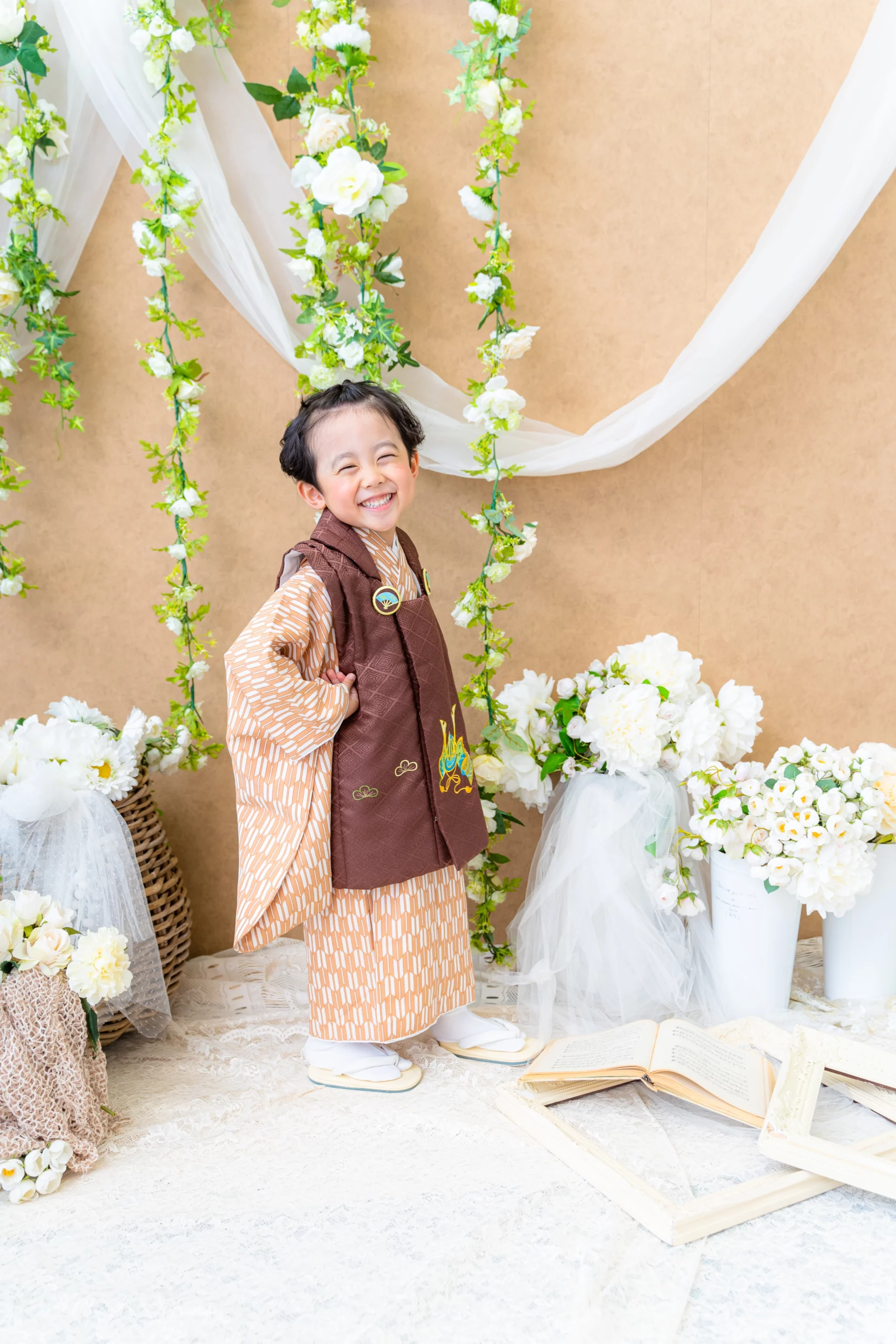 ご兄弟のソロ撮影は、75カット以上のプランに限り、ご案内可能です。和装を着用しないお子様のソロ写真をご希望の場合、¥7,700(税込)の追加料金で、+1シーン・+25カットでご参加いただけます。