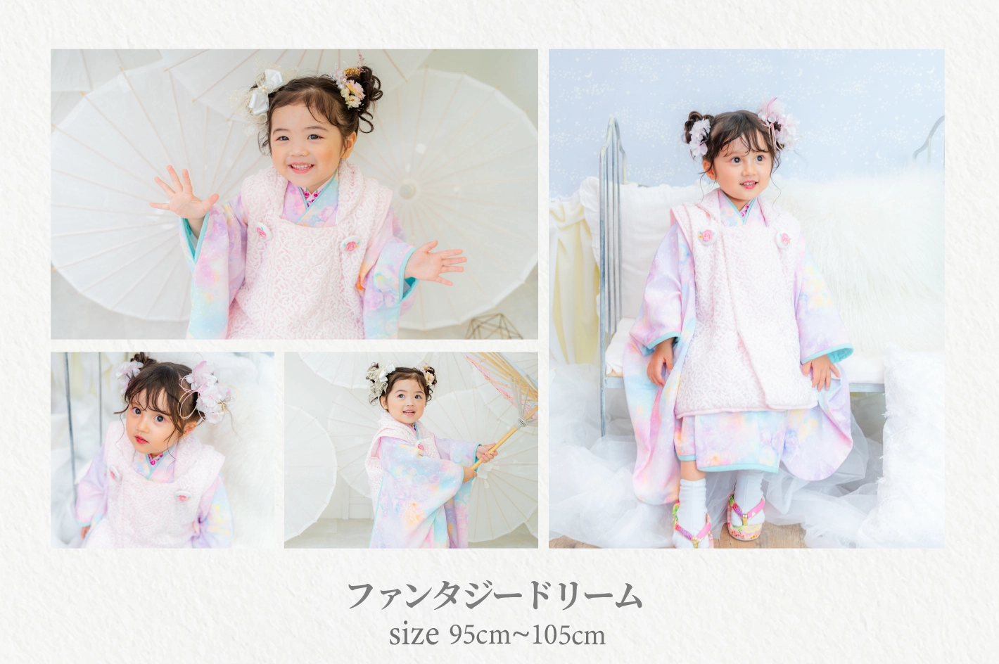 ※七五三撮影のお子様、洋装のみでご参加のご兄弟ともに、衣装追加オプションはご利用いただけませんヘアメイク