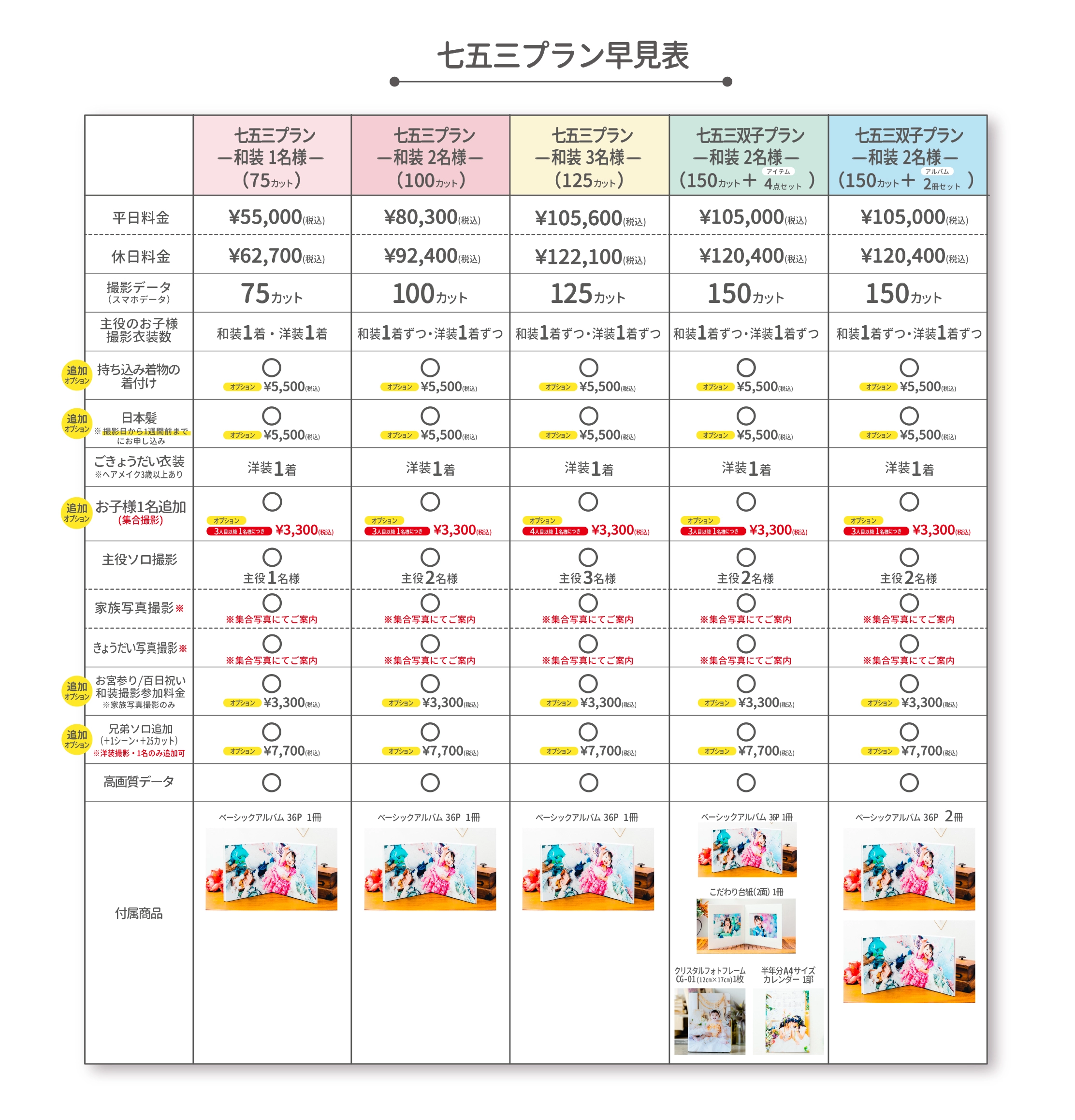 ※お子様4名以降ご参加の場合、1名につき3,300円(税込)を頂戴いたします(集合撮影に限ります)