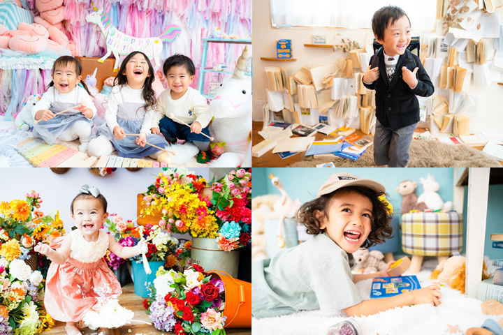七五三撮影やお誕生日記念撮影、成長記録撮影、卒園・入学撮影でご来店をいただいています。