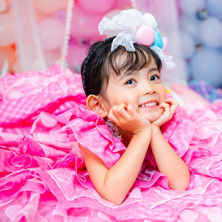 女の子の心をくすぐる、見るだけでワクワクのドレスを着て、憧れのプリンセスに。